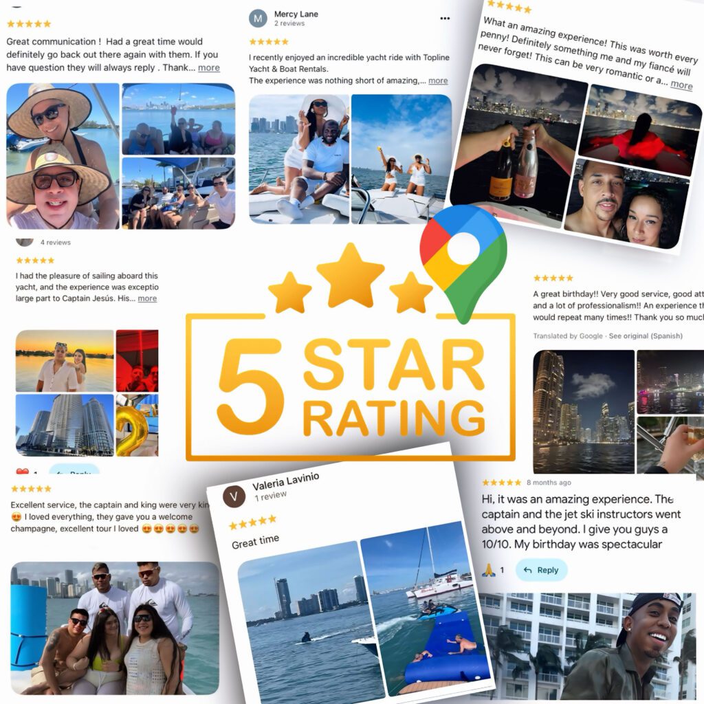 Topline Yacht & Boat Rentals offers premier luxury yacht charters in Miami . With a wide selection of vessels, professional captains, and over 200 five-star Google reviews, we deliver quality experiences at affordable prices. Whether you’re celebrating a special occasion or exploring Biscayne Bay, we make your Miami yacht rental unforgettable.