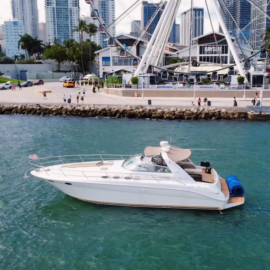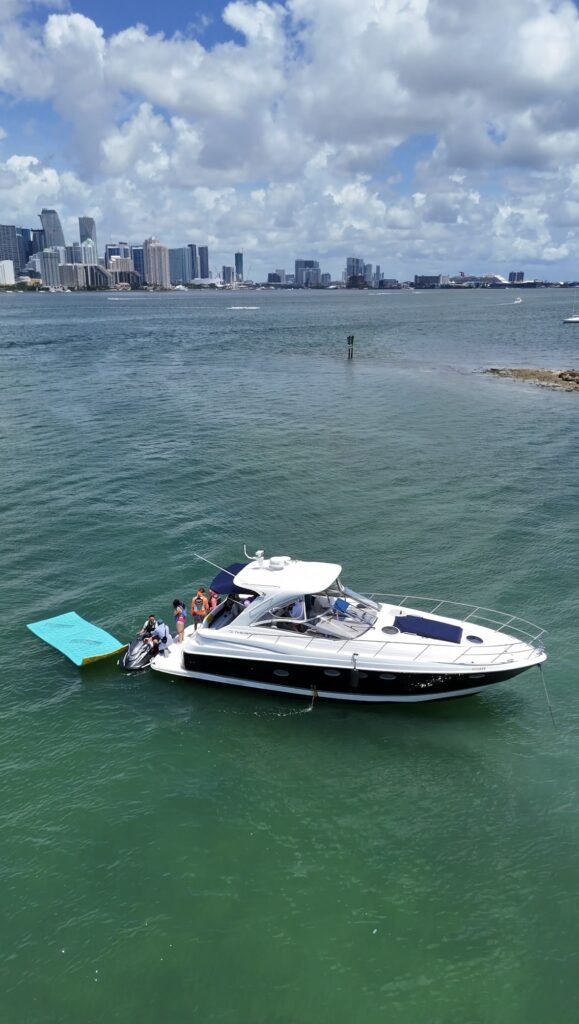 Experience one of the most popular Miami boating experiences — a yacht tie-up. Perfect for guest who have more than 13 guest. A yacht tie-up allows two or more yachts to anchor side-by-side at a sandbar or scenic spot, creating one large floating space where guests can swim, move between yachts, and enjoy a larger group experience while still having their own private charter.